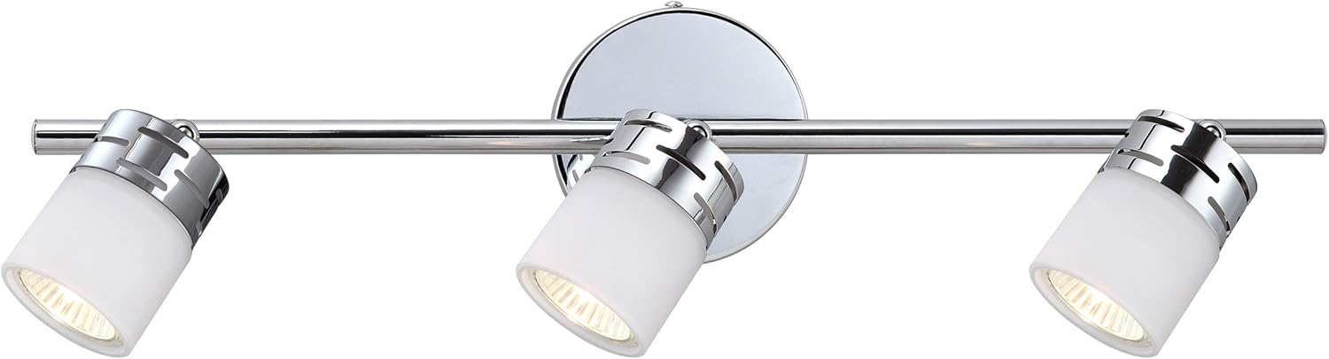 CANARM Style Megan IT419A03CH10 3 Light Track Light - Track lighting with class. Megan, featuring white flat opal glass shades against chrome, provides an inviting atmosphere as well as illumination. Uses 3 50W GU10 bulbs (Not included). Canarm has a long and successful history of supplying lighting and ceiling fans. They work diligently to create a comprehensive selection of styles and designs as well as maintaining high standards of product quality and value.